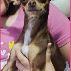 Es una chihuahua de 1 año, de color café chocolate con pechito blanco, su patita derecha es de color blanco y tiene cejas amarillas, es nerviosa y chilloncita.