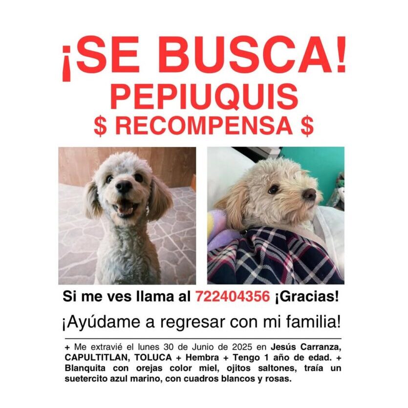Perdida el 30 de junio del 2025. Traía suéter azul marino, con cuadros blancos y rosas.